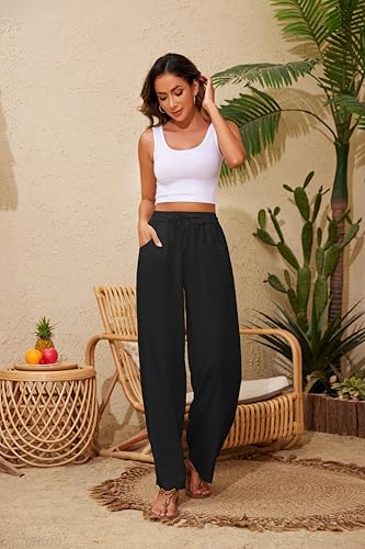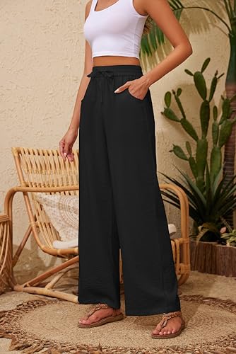 Women Pants Flowy Pants Drawstring Waist Wide Leg Palazzo Beach Pants Loose Fit with Pockets