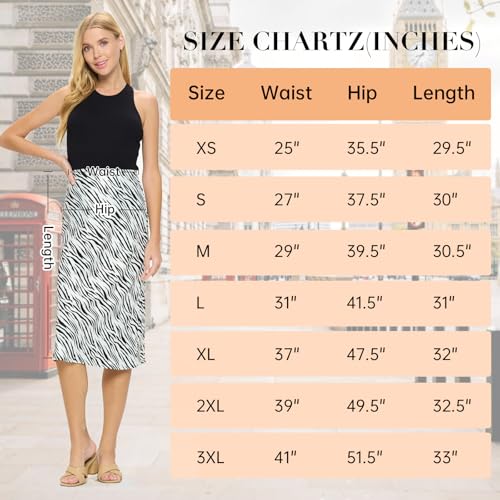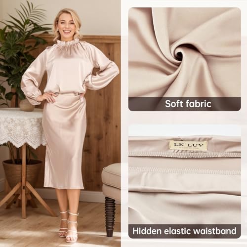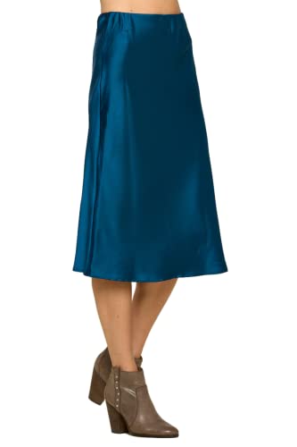 Women Solid High Waist Silky Casual Elastic Satin Midi Skirt -Made in USA (Available in Plus Size)