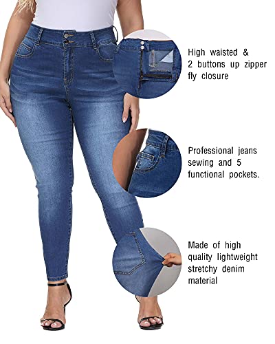 Womens Plus Size Skinny Jeans High Waisted Stretchy Classic Ankle Jean