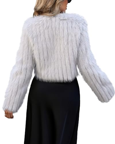 Women’s Striped Faux Fur Coat Open Front Long Sleeve Fluffy Outwear Jacket