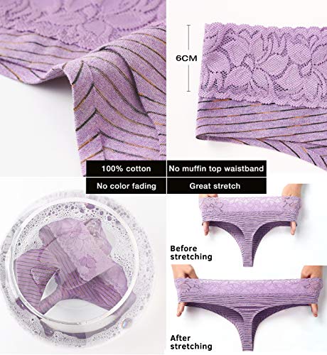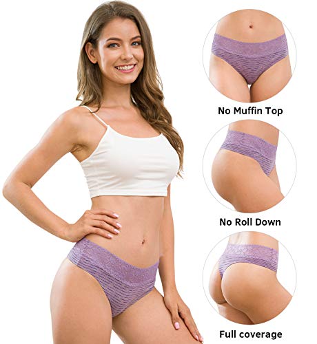 Women’s Thongs Underwear Cotton Seamless Thongs for Women Lace Trim Panties