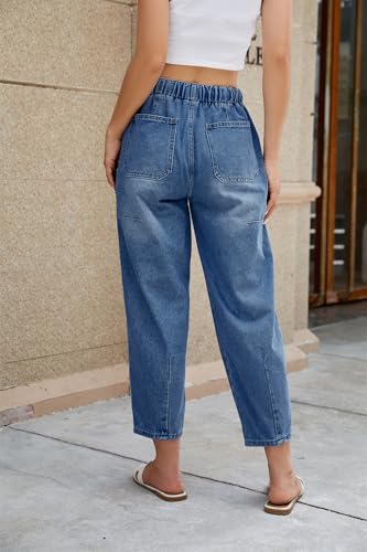 Women’s Wide Leg Baggy Jeans Elastic Low Rise Barrel Jean Loose Boyfriend Denim Pants with Drawstring