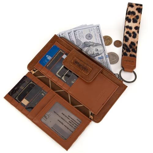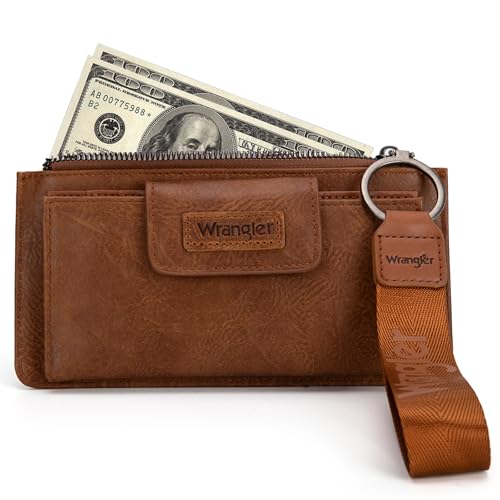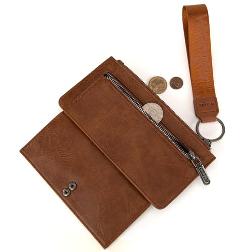 X Wrangler Brown Wristlet Wallet Minimalist Clutch Womens Wallet Rfid Card Cases & Money Organizers with Coin Purse and Smooth Zipper