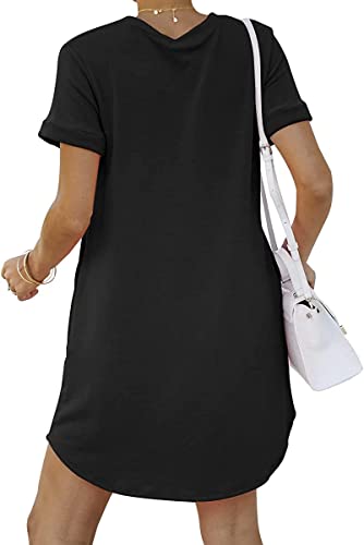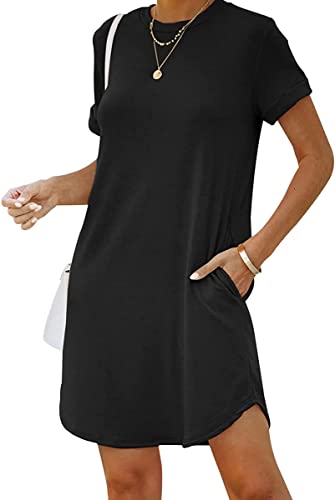 YEXIPO Women’s Casual Summer Short Sleeve T Shirt Dress Nightgown Crew Neck Loose Solid Color Basic Dresses with Pockets
