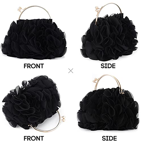 Yokawe Floral Clutch Purses for Women Satin Flower Evening Bag Party Prom Handbags