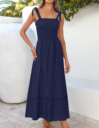 ZESICA Women’s 2025 Summer Boho Spaghetti Strap Square Neck Solid Color Ruffle A Line Beach Long Maxi Dress